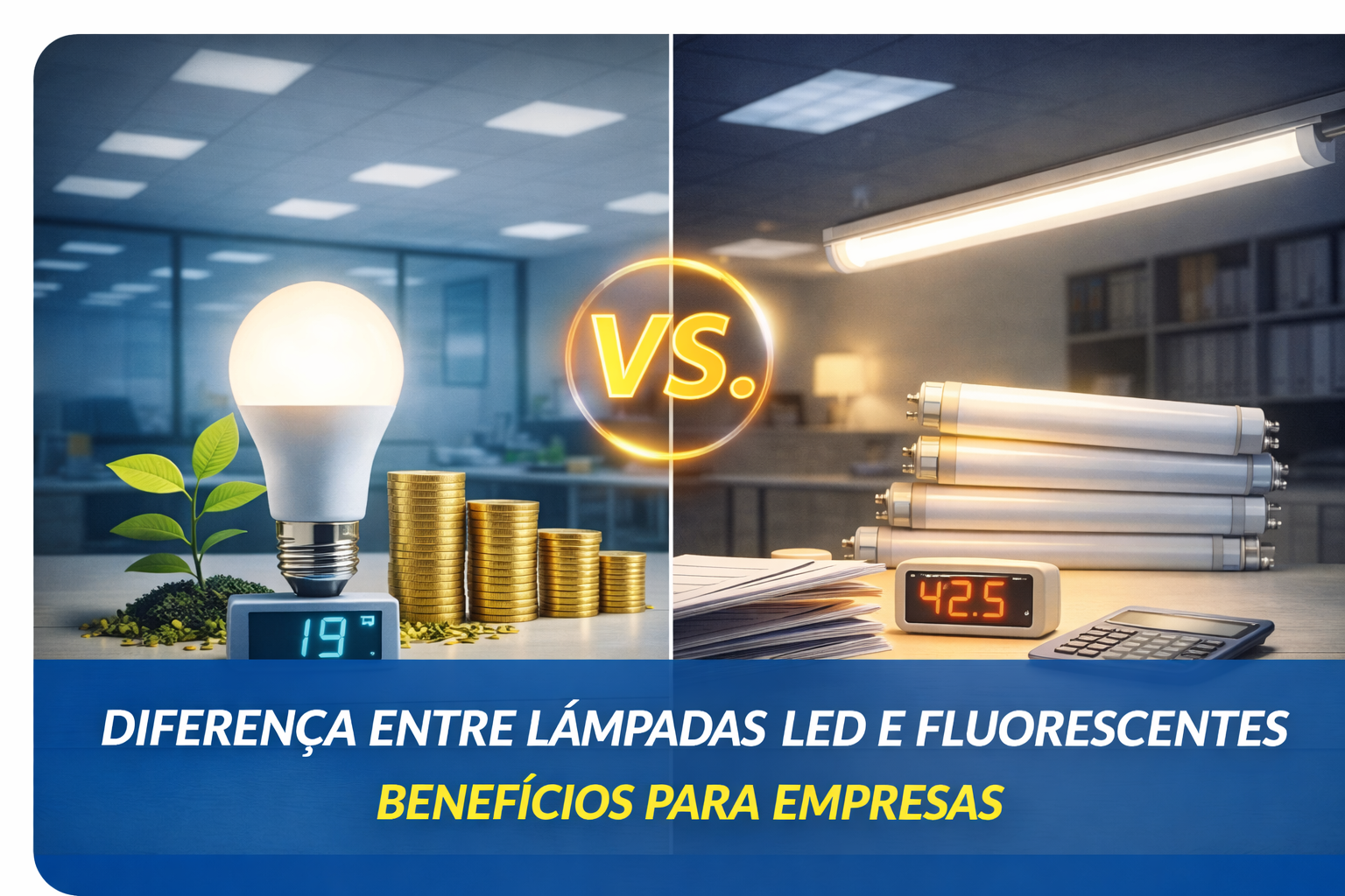 A diferença entre lâmpadas LED e fluorescentes: benefícios para empresas vai além do consumo energético. Empresas que migram para LED economizam energia, reduzem manutenção, aumentam a eficiência e melhoram o conforto visual dos colaboradores.