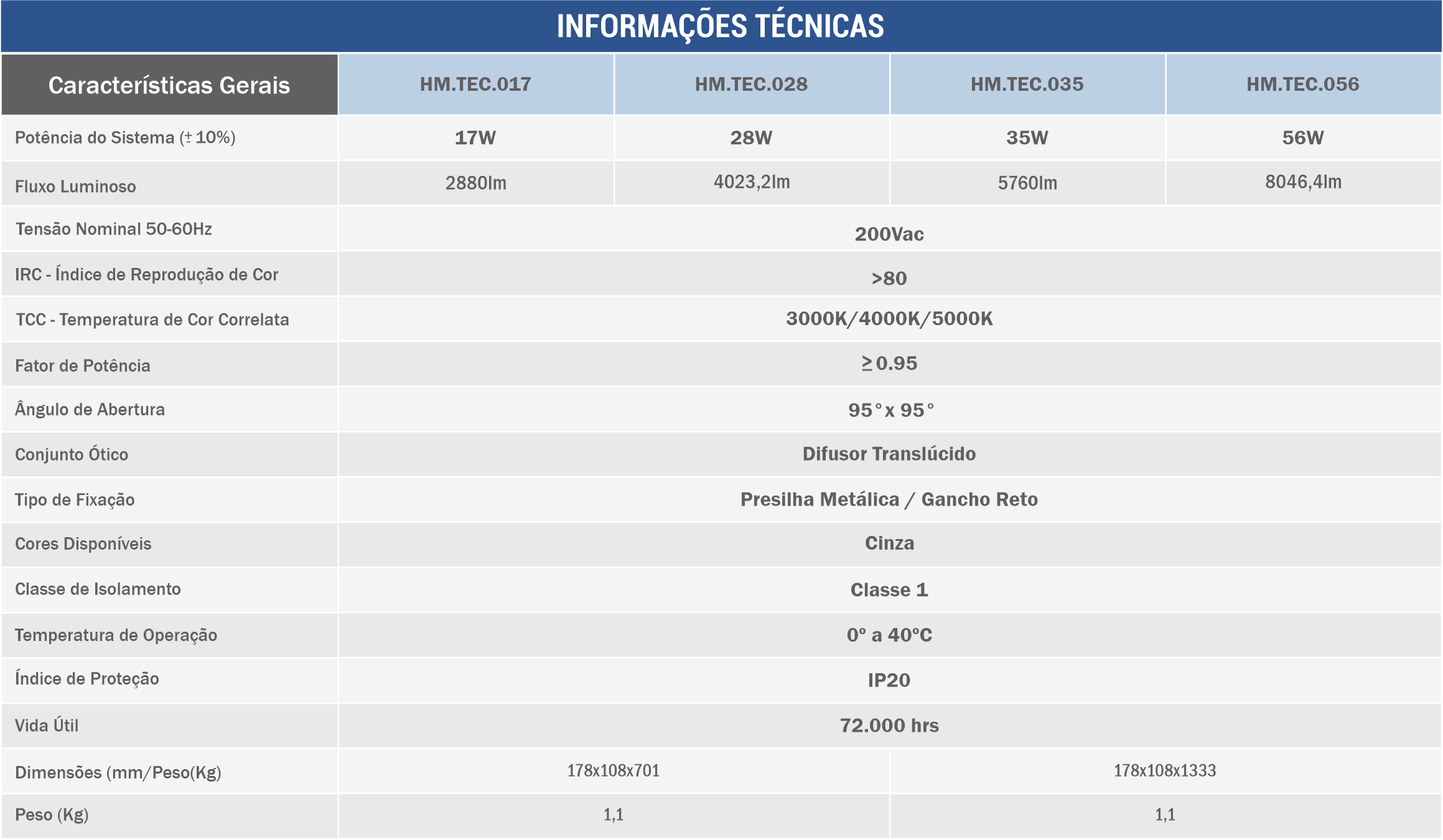 | Potências Disponíveis | 17W, 28W, 35W, 56W |