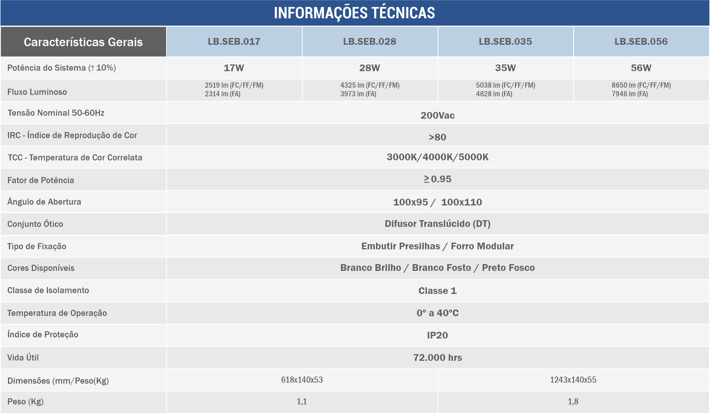 | Potências Disponíveis | 17W, 28W, 35W, 56W |