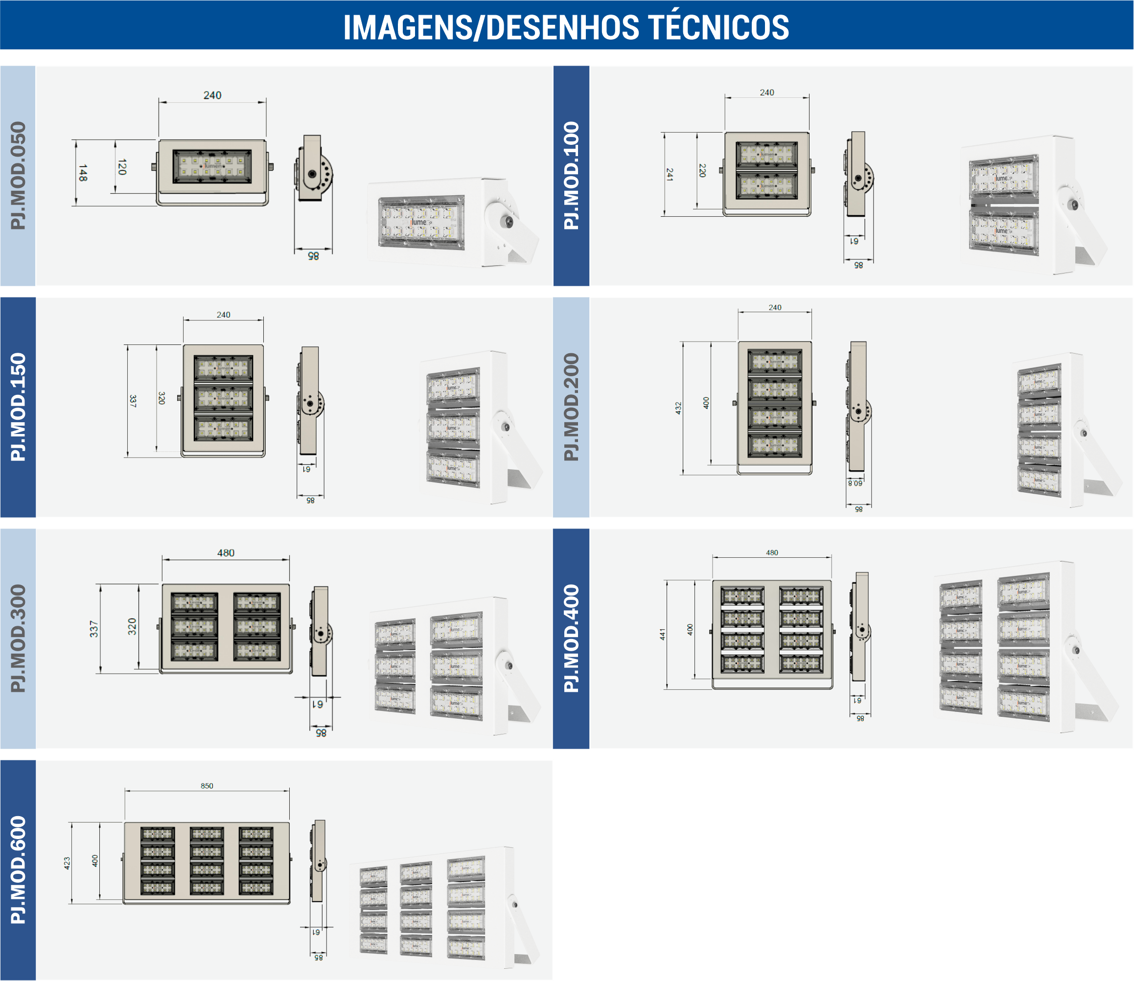 A linha de Projetores Modulares é solução versátil para iluminação eficiente em diversos ambientes. Esses projetores, com design robusto, destacam-se pela adaptabilidade e flexibilidade na configuração, atendendo às necessidades específicas de espaços como áreas esportivas, fachadas, pátios, câmaras frias e estacionamentos externos. Com uma eficiência energética superior a 150lm/W, seu design modular e variedades de fachos luminosos, oferece uma solução flexível e eficiente para a iluminação em locais que demandam intensidade luminosa e adaptabilidade. Com uma vida útil superior a 102.000 horas (L70), proporciona uma redução significativa no custo de manutenção, e durabilidade do projeto inicial. Corpo em alumínio em pintura eletrostática epóxi e lentes PMMA e PC.