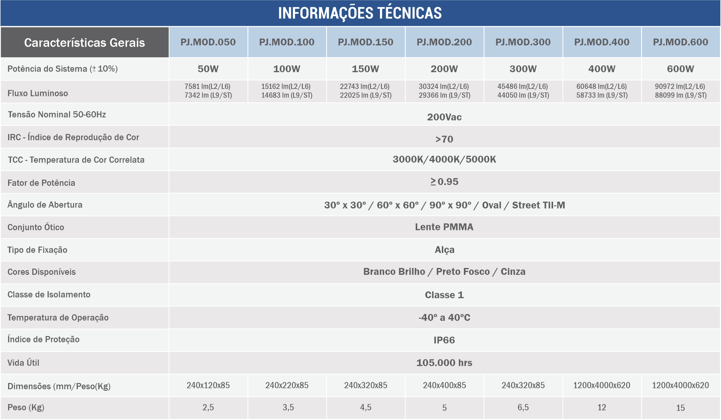 | Potências Disponíveis | 50W, 100W, 150W, 200W, 300W, 400W, 600W |